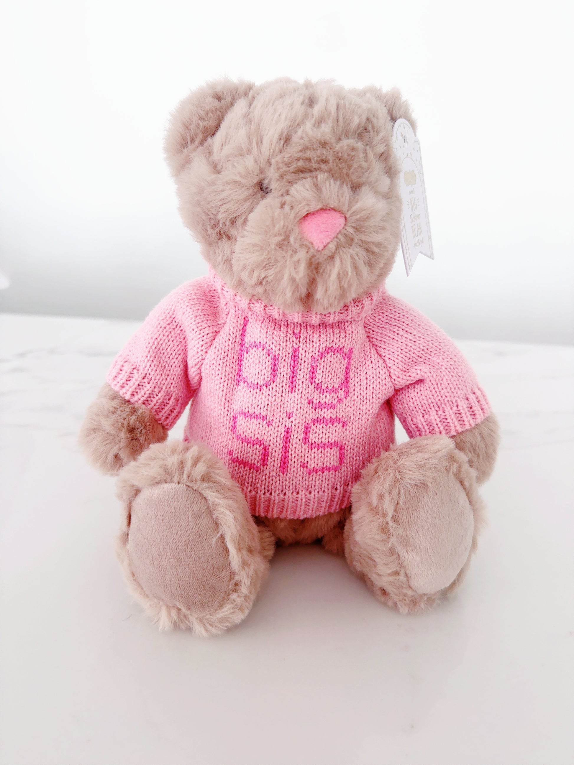 Big Sister Plush Bear is an adorable and cuddly companion perfect for children and collectors alike. This charming plush bear is crafted from high-quality faux fur, ensuring a soft and huggable texture that feels delightful to the touch. The bear is dressed in a cozy knit sweater, adding a touch of warmth and style to its appearance. Designed with a weighted seat, this plush bear sits comfortably and securely, making it an ideal decorative piece for any room. Measuring 12 inches in height, it is the perfect size for snuggling and play. Made from 100% polyester, the faux fur is durable and easy to maintain, ensuring that this plush bear remains a cherished friend for years to come.