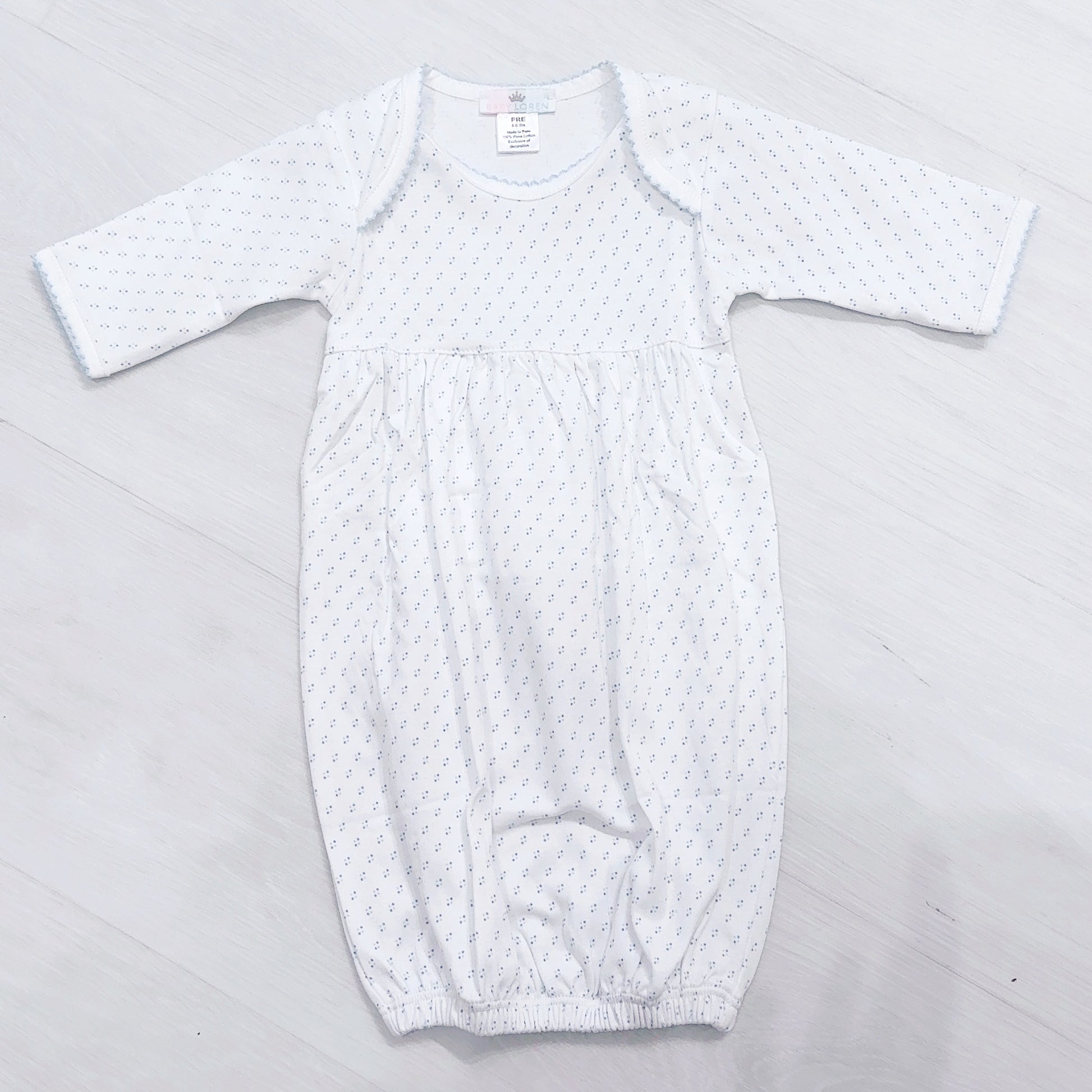 BLUE DOTS PIMA GOWN BLUE TRIM * GOWN * Made In PERU * 100% PIMA COTTON