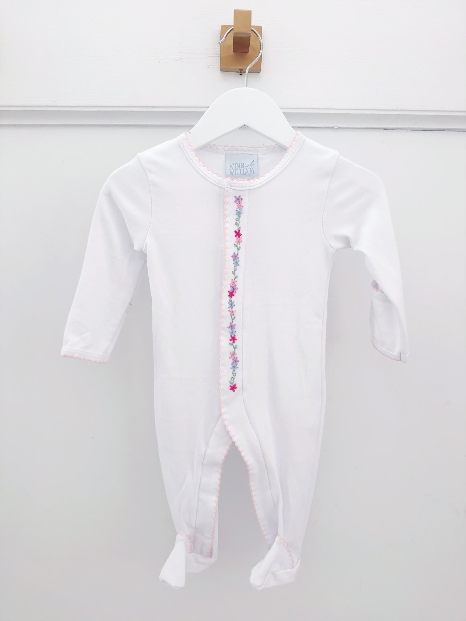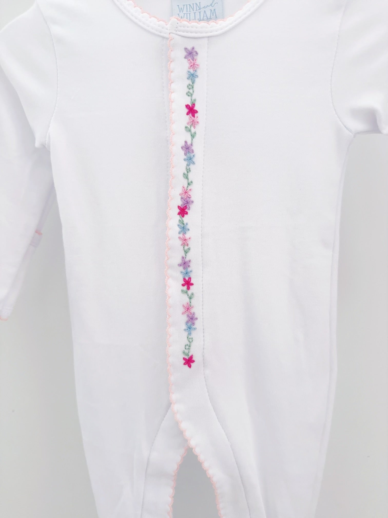 Soft 100% cotton sleeper with a baby pink picot trim