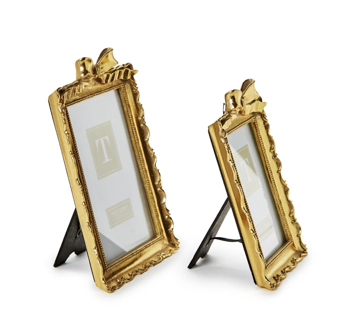 Show off your cherished memories with our gold frames. Crafted with intricate details and accent bows, these frames add a touch of elegance to any space. Made of high-quality resin, these frames are both sturdy and stylish.