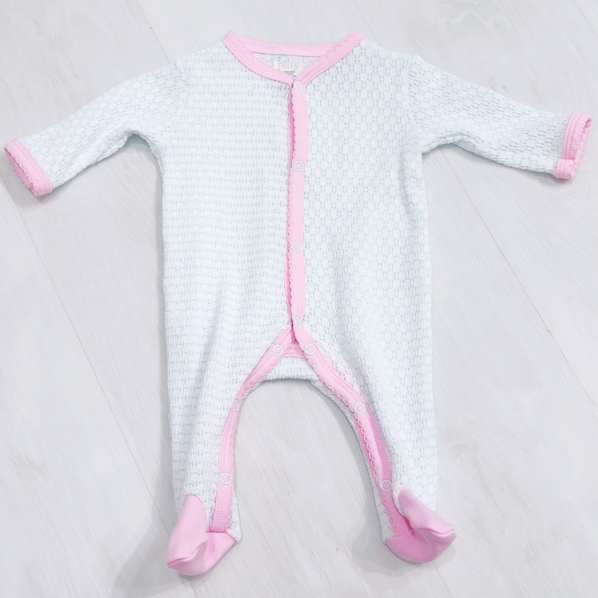 Paty Footie- Blue with Pink Trim