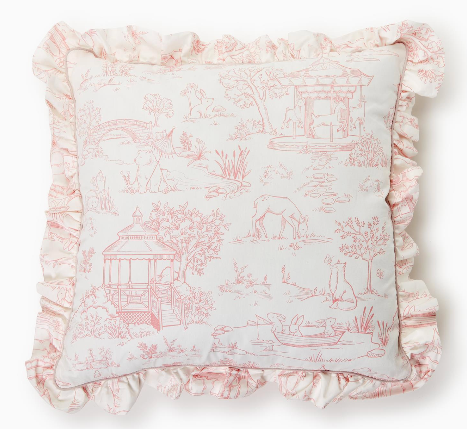 Introducing the sweetest addition to our Classic Baby Collection. Designed with beautiful ruffle and piping details, our Animal Toile Pillow adds the perfect amount of charm to nurseys. It's zipper opening makes this pillow ideal for monogramming and an ease to clean.